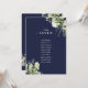 Esses elegantes números de mesa de casamento com folhas de greenery botânico azul marinho podem ser personalizados com o plano de assentos dos seus convidados em tipografia chic. Os cartões são impressos na frente e no verso (dupla face). Projetado por Thisisnotme©