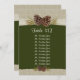 Woodland Pine cones e burlap parecem cartão de assentos de casamento em verde-oliva escuro. Personalizar individualmente para cada mesa com um número de tabela e nomes de convidados em cada mesa.