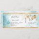 Bilhete de Passagem de Embarque de Destino Tropical Convite para Plano Dourado com ícone de avião e coração