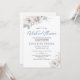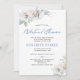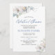 Convite moderno para bebê virtual chic ou chá de menina, com flores azul ardente e pálidas de marfim com folhagem e folhas botânicas de inverno e uma escrita manual típica de moda branca e vírgula magnética com script de tipografia azul empoeirado. ++++++++++ É fácil personalizá-lo com seus detalhes! ++++++++ Adequado para tendências elegantes glam florais temidos conferência de zoom virtual distanciamento de vídeo virtual distanciamento de longa distância ou chás de fraldas Skype.