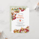 Convite elegante e moderno com ramos e folhas brilhantes do outono (rugem, dogrose) e ilustração de aves. Fundo de faixas verdes verticais Shabby. Perfeito para todas as ocasiões e feriados: aniversário, chá de fraldas, casamento, salvar a data, férias de outono e outros. Adicione seu texto.