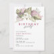 Convites de festas de aniversários modernos com um cabeçalho de plantas tropicais e uma cor rosa-púrpura. Adequado para todas as idades.