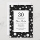 Clássica desenhada com fundo preto, os detalhes modernos de platina, prata e bolinhas acrescentam uma sensação arejada e divertida. Lindos mas simples, esses convites são perfeitos para honrar o aniversário especial de seu amado chegando aos 30 anos. Aproveite a qualidade do design e torne seu evento memorável. Este convite é o equilíbrio perfeito entre sofisticação e diversão!
