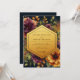Embrace a dramatic and opulent mood with this stunning botanical design. Against a deep, dark backdrop, a lush arrangement of painterly blooms unfurls in vibrant shades of plum, magenta, and warm marigold. Golden-hued foliage adds a touch of luminosity, creating a rich and romantic aesthetic for your special day.