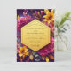 This design features a vibrant and dramatic arrangement of florals set against a deep, moody background. Luminous magenta dahlias and golden yellow lilies burst with color, creating a feeling of opulent romance. The rich, jewel-toned palette of plum, gold, and fuchsia makes this a truly striking choice for a luxurious affair.