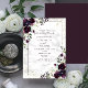 Crie o convite poste perfeito para o brunch de casamento com este design de moda com elementos botânicos florais de ameixa roxa e eucalipto, elementos falsos de canto de poeira dourada, moldura púrpura de ameixa e fundo de mármore faux carrera. Perfeito para queda e casamentos no inverno. Muito obrigado por apoiar a nossa pequena empresa, que apreciamos muito! Copyright Anastasia Surridge for Elegant Invites, todos os direitos reservados.