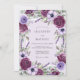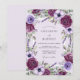 This design features a lush array of deep plum roses and pale lavender anemones set against a soft lilac wash. Delicate sprigs of lavender and silvery eucalyptus leaves enhance the romantic, botanical aesthetic. Hand-painted watercolor artistry creates an atmospheric mood, perfect for an elegant seasonal event with a rich purple and green color palette.