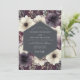 Embrace a dramatic and romantic atmosphere for your special day. This elegant design features a lush arrangement of ivory anemones with dark centers, nestled among deep plum and mauve blossoms. The moody, painterly composition against a dark charcoal background evokes a sense of twilight elegance. Perfect for an autumn or winter union with a sophisticated, timeless feel.