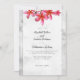 Plumeria tropical floresce convite para casamento. Lindas flores de plumeria rosa fazem uma fronteira floral tropical brilhante ao longo dos cartões brancos. Um fundo floral de cinza cria uma borda fina na frente com mais disso na parte traseira das placas. Texto moderno com curvado "junte-se" no topo e roteiro para os nomes e palavras de "celebração do amor".