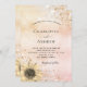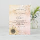 Um convite de casamento moderno e elegante. Um fundo rosa dourado e rosa velho com aparência metálica decorado com pó de brilho dourado e prateado e um girassol rústico. Personalize e adicione seus nomes e detalhes da festa. Letras pretas.