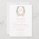 Este adorável.. é um convite para o bebê... seria perfeito para o seu bebê. Tem uma crista de aquarela cor-de-rosa-pêssego, rodeada de verde e rosas brancas, coladas com pêssego, a primeira inicial e o nome da joia, e uma cor d'água de pêssego coordenada, listrada para trás. É único e precioso.