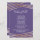 Listras modernas, simples e elegantes em dourado rosa impresso falso em roxo violeta, cartões de poço de desejos. Este design clássico e sofisticado é perfeito para o casal que se casa com estilo, tendência e sofisticação. Personalize com sua própria mensagem na frente e um monograma personalizado no verso. Todo o design de impressão de foto.