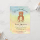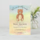 Este belo Convite para Chás de fraldas é decorado com um ursinho de pelúcia e um fundo colorido com as palavras "podemos esperar muito!" Facilmente personalizável. Use a Ferramenta Design para alterar o tamanho, o estilo ou a cor do texto. Porque nós criamos a nossa trabalho de arte, você não encontrará esta imagem exata de outros designers. Original Watercolor © Michele Davies.