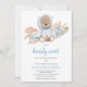 Prepare-se para chá seu filhote com amor com este Convite para Chás de fraldas de Espera. Apresentando um urso marrom adorável vestindo um casulo de bebê azul aconchegante, sentando-se adoçadamente entre a grama pampas macia e os delicados florais azuis. A mistura perfeita de rústico e feiticeiro, esta design dá o tom para uma celebração quente, na moda e animadora. BBS299