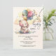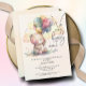 Um bonitinho urso de pelúcia fofinho segurando um monte de balões e as palavras "Nós podemos esperar muito..." junto com os detalhes do seu partido são apresentadas neste convite para chás de fraldas neutro em relação ao gênero. CORRESPONDENTE a itens na nossa coleção.