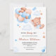 Urso de pelúcia bonito com balões entre nuvens, estrelas e aves