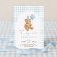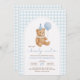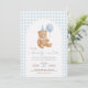 Prepare-se para chá dos pais com amor usando este adorável convite para chás de fraldas "Nós podemos esperar muito"! Com um doce ursinho pintado à mão segurando um balão azul, esta design é perfeita para celebrar a chegada de um pequeno pacote de alegria. O fundo de gingham azul suave e o layout de arco inspirado na vintage adicionam um eterno, encanto arecedor ao seu evento.