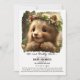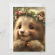 Pintura digital de um adorável filhote de ursos na floresta cercada por verde e com flores acima de sua cabeça.