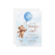 Um ursinho fofinho bonito segurando-se num balão azul. Fundo do céu com aquarela. Fontes de estilo manuscrito e caprichoso. Paleta de cores azul e marrom. Use a Ferramenta Editar para selecionar diferentes fontes, alterar a cor do plano de fundo ou redimensionar/reposicionar o urso ou o céu. © Kimbellish, LLC