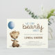 Este adorável ursinho de pelúcia com um convite de chá de fraldas de gravata azul colocará um sorriso nos rostos dos seus convidados. O fundo de creme macio combinado com tons neutros vibrantes de azul e marrom é perfeito para um chá de fraldas de menino. A tipografia fofa adiciona um toque lúdico ao convite, com a frase "podemos esperar muito", acrescentando uma torção divertida. Seus hóspedes vão adorar receber este delicioso convite para os ursos! Ilustrada e projetada por Patricia Alvarez.