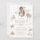 Podemos Antecipar o Convite para Chás de fraldas de Esperança Celebrar a chegada com esta "Podemos Andar Esperar", Chamadas para Bebês, uma charmante ode a maravilhas da floresta e ursos fofinhos. Feito com encanto rústico, este convite apresenta um adorável filme de ursos em tons quentes e sujos de marrom. A ilustração do ursinho bonitinho adiciona um toque encantador, definindo o tom perfeito para uma celebração acolhedora e animadora. Abraçar a alegre antecipação com esse design carinhoso, ideal para acolher o pequeno no mundo. Compartilhe o entusiasmo em estilo, convidando os entes queridos a se juntarem à aventura do chá de fraldas, cheios de doçura e alegria.
