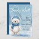 Este chá de fraldas de urso azul bonito de inverno apresenta um adorável filhote de urso cercado por um fundo de inverno de neve, e uma citação brincalhona "Nós podemos esperar". Use as ferramentas de Design para personalizar o texto, a fonte e as cores. Também disponível como download digital.