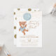 Você está procurando um tema de chá de fraldas de menino fofo? Veja se podemos fazer um convite para Chás de fraldas. Apresenta um único ursinho de cor d'água fofo com um balão azul, pintado pelo Club Magique. Tem sutil brilho dourado na frente e um padrão dourado de ponto brilhante na parte de trás. O texto "We can Barly Wait" é escrito com um belo roteiro de caligrafia. Você pode adicionar seus detalhes muito facilmente nos campos de modelo ou até personalizar o estilo e as cores da fonte usando a ferramenta design. Temos uma coleção inteira de suprimentos para seu chá de fraldas com este tema do urso. Vá verificar agora. Festa de excelente!