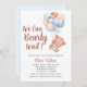 Podemos Antecipar o Convite para Chás de fraldas de Esperança apresenta um tema de urso adorável, mostrando uma ilustração pintada à mão de um filhote doce segurando balões. O texto encantador afirma: "Podemos esperar muito!" Este convite é perfeito para comemorar um chá de fraldas, acrescentando um toque de beleza à ocasião especial.