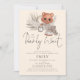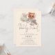 Nós podemos esperar Boho Chic Girl ou Boy Chá de fraldas. Um urso fofo segurando um relógio com penas e gramíneas e antigos panos de fundo brancos. A Espera Inicial está em um script de na moda. Personalize facilmente o resto do texto de acordo com as suas necessidades.