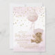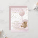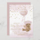 Um bebê urso segurando um balão cor-de-rosa com a frase "mal podemos esperar".