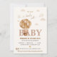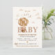 Podemos Esperar - Chá de fraldas convite! Urso peluzinho bonito, num balão de ar quente, com caramelo neutro, creme de café e tons castanhos. O urso é bem-vindo por dois pássaros pequenos, com um borrão de nuvens sonhadoras. Personalize os detalhes para se adequar ao seu evento e edite o registro do bebê ou elimine!
