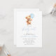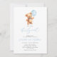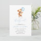 Celebrar a chegada de um pequeno com este charmoso convite para chás de fraldas, com um doce ursinho d'água segurando um balão. Este design é perfeito para qualquer tema de chá de fraldas do garoto "Podemos Esperar". Com uma escrita delicada e detalhes elegantes, ele dá um tom caloroso e convidativo para sua celebração. Personalize com todos os detalhes do evento, incluindo o nome, a data, a hora, o local e as informações do registro.