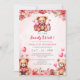 Podemos Esperar chá de fraldas floral, o convite para o chá de fraldas do Namorados do Urso de Teddy, flores cor-de-água rosa giras e o convite para o ursinho.