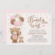 Este adorável convite temático do ursinho coloca um sorriso nos rostos dos seus hóspedes! O esquema de cor rosa, castanho, bege e marfim pastel macio torna este design perfeito para um chá de fraldas feminino. Personalize o convite com seus detalhes e se quiser reorganizar o estilo e posicionamento do texto, pressione o botão "Clique para personalizar mais".