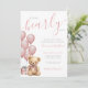 "Nós podemos esperar" define o tom para este adorável convite de chá de fraldas, perfeito para celebrar a futura mãe e a sua filha. Apresentando balões cor-de-água cor-de-rosa, um ursinho de pelúcia bonitinho e bronzeado com um arco rosa, e uma caixa-presente rosa, este design é tão charmoso quanto doce. As fontes são uma mistura de elegantes argumentos calísticos e serifas clássicas, criando um na moda e um aspecto equilibrado. As cores atuais da fonte são cor-de-rosa e cinzas, mas você pode personalizá-las, juntamente com o plano de fundo, para corresponder ao seu tema. A parte de trás apresenta um simples fundo rosa para um olhar limpo e coeso. Este convite versátil funciona durante todo o ano, adicionando um toque de elegância divertida a qualquer celebração de chá de fraldas. Disponível como um convite impresso ou um convite digital para download que você pode enviar por e-mail ou impressão localmente.
