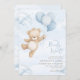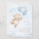 Podemos esperar! - Um convite de Chá de fraldas para o tema do Urso Gidinho com balões azuis.