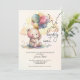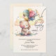 Um ursinho fofinho bonito segurando um monte de balões e as palavras "Nós podemos esperar..." junto com os detalhes do seu partido estão representados neste convite de chá de fraldas neutro com relação ao gênero com registro, rifle de fralda e livros para informação sobre bebês nas costas. DOWNLOAD INSTANTÂNEO, IMPRESSO ou ambos. CORRESPONDENTE a itens na nossa coleção.
