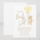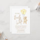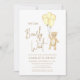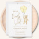 Este charmoso convite à chá de fraldas, neutro em termos de gênero, apresenta balões amarelos de aquarela e um ursinho de pelúcia com as palavras "Nós podemos esperar muito" na tipografia da na moda. É facilmente personalizável. Original Watercolor © Michele Davies.