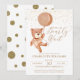 Você está procurando um tema de chá de fraldas bonito? Veja se podemos esperar o convite para Chás de fraldas neutro por gênero. Apresenta um único ursinho de película de aquarela com um balão marrom, pintado por Club Magique. Tem sutil brilho dourado na frente e um padrão dourado de ponto brilhante na parte de trás. O texto "We can Barly Wait" é escrito com um belo roteiro de caligrafia. Você pode adicionar seus detalhes muito facilmente nos campos de modelo ou até personalizar o estilo e as cores da fonte usando a ferramenta design. Temos uma coleção inteira de suprimentos para seu chá de fraldas com este tema do urso. Vá verificar agora. Festa de excelente!