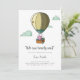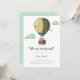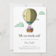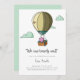 É bom esperar um convite de chá de fraldas de menina com uma ilustração de um filhote de urso num balão de ar quente flutuando no céu. Ilustrada e projetada por Patricia Alvarez.