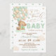 Urso de Teddy com balões verdes Gênero Convite para Chá de fraldas Neutro