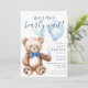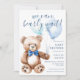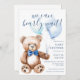 Crie o seu convite personalizado para chás de fraldas de rapaz, apresentando uma ilustração simples de design e ursinho.
