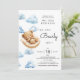 "Podemos esperar", Chá Baby Boy Invitation, apresenta uma charmosa ilustração aquosa de um urso-cama em um pano de fundo de nuvens lisas. Este design adorável dá um tom de sonho para sua celebração especial, perfeito para acolher a chegada de um garotinho. Com seu trabalho de arte branco e sua paleta de cores suaves, este convite certamente deliciará seus convidados e tornará seu chá de fraldas um evento memorável. Criado por Designs SweetFind