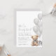 "Nós podemos BEARly esperar!" define o tom para este doce e neutro convite para chás de fraldas, desenhado com tons de cinza suaves para uma sensação minimalista e eterno. O texto é colocado do lado esquerdo em matizes de cinza quentes, usando uma mistura de caligrafia manuscrita e fontes clássicas serif para um toque elegante e moderno. À direita, uma ilustração encantadora de aquarela apresenta um ursinho bronzeado com balões de cinza, uma arco de cinza coordenadora e uma caixa de presente correspondente. O urso tem um filtro sutil de cinzas aplicado, que melhora o aspecto neutro. Se preferir uma versão mais vibrante do urso, pode remover facilmente o filtro no editor: clique no trabalho de arte, selecione o urso e, no canto superior direito, mude a definição de 'filtro' para 'nenhum'. O verso do convite mostra uma simples cinza de fundo, adicionando um acabamento polido e coeso. As cores de fonte e de fundo podem ser personalizadas para corresponder ao tema e ao estilo do seu chá de fraldas. Perfeito para honrar os futuros pais, este convite oferece um design versátil e sutil que funciona perfeitamente para qualquer celebração neutra em termos de gênero. Disponível como um cartão impresso ou um arquivo digital para download, é uma maneira deliciosa de compartilhar seu entusiasmo para a próxima chegada.