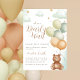 Chá de fraldas de convite para modelo do urso do Brown Sage Green Teddy, podemos esperar chá de fraldas convidada, urso com balões de transferência de chá de fraldas, SNeutro de gênero.