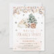 O Convite para Chá de fraldas de Urso de Inverno que Podemos Esperar é um design charmoso e caprichoso, ideal para uma celebração aconchegante com o tema do inverno. No coração do convite está um adorável urso polar, cuja aparência macia e fofinho evoca calor e alegria. O urso, rodeado por flocos de neve suavemente caindo, cria uma terra maravilhosa de inverno, perfeitamente adequada para um chá de fraldas durante os meses mais frios. As rosas cor-de-rosa embaçadas adornam delicadamente o design, acrescentando um toque suave e romântico que equilibra o pano de fundo gelado. Uma árvore de Natal maravilhosamente decorada fica no fundo, adicionando um talento festivo que captura o espírito da época. A paisagem nevada, aliada ao urso polar, traz uma sensação de maravilha e entusiasmo ao convite. Essa combinação de neve, rosas de pincel e elementos de inverno faz o design mágico e charmoso, estabelecendo o tom perfeito para uma celebração alegre do novo bebê que virá. Itens correspondentes disponíveis.