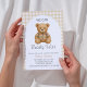 Um chá de fraldas temático "We Can Barly Wait" com ursinho giro vestindo roupa de xadrez de designer de luxo em cores castanhas, beges e fundo de gingham. Você pode personalizar isso facilmente com seus detalhes.