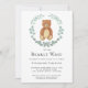 Este belo convite ao Chá de fraldas é decorado com um ursinho de peluche de cor d'água, eucalipto verde, e as palavras "podemos esperar muito!" Facilmente personalizável. Use a Ferramenta Design para alterar o tamanho, o estilo ou a cor do texto. Porque nós criamos a nossa trabalho de arte, você não encontrará esta imagem exata de outros designers. Original Watercolor © Michele Davies.