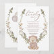 Celebre a chegada iminente do pequeno com um único e belo chá de fraldas de ursinho de pelúcia com biotema. Convide os seus entes queridos com um convite especial que inclui um urso de aquarela fofo, acentuado por uma bela coroa de flor silvestre, e a frase "Nós podemos esperar muito!" Que esta ocasião especial seja o início de algo bonito e memorável.
