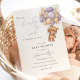 Podemos esperar! Ursinho-Urso-Chá de fraldas com convite de com um ursinho-d'água voando alto com balões roxos. Personalize com suas informações para a mamãe a ser. Clique em "clicar para personalizar mais" para alterar o estilo, o tamanho ou a cor da fonte.